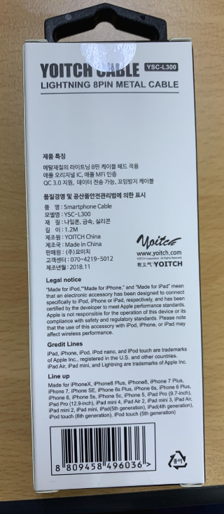 [요이치] 정품 아이폰 MFi 라이트닝 루트 8핀 케이블