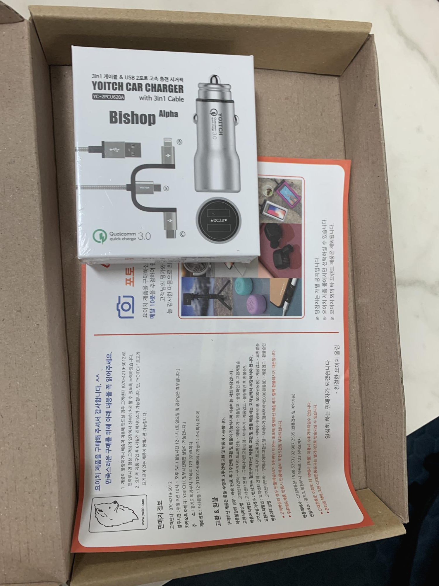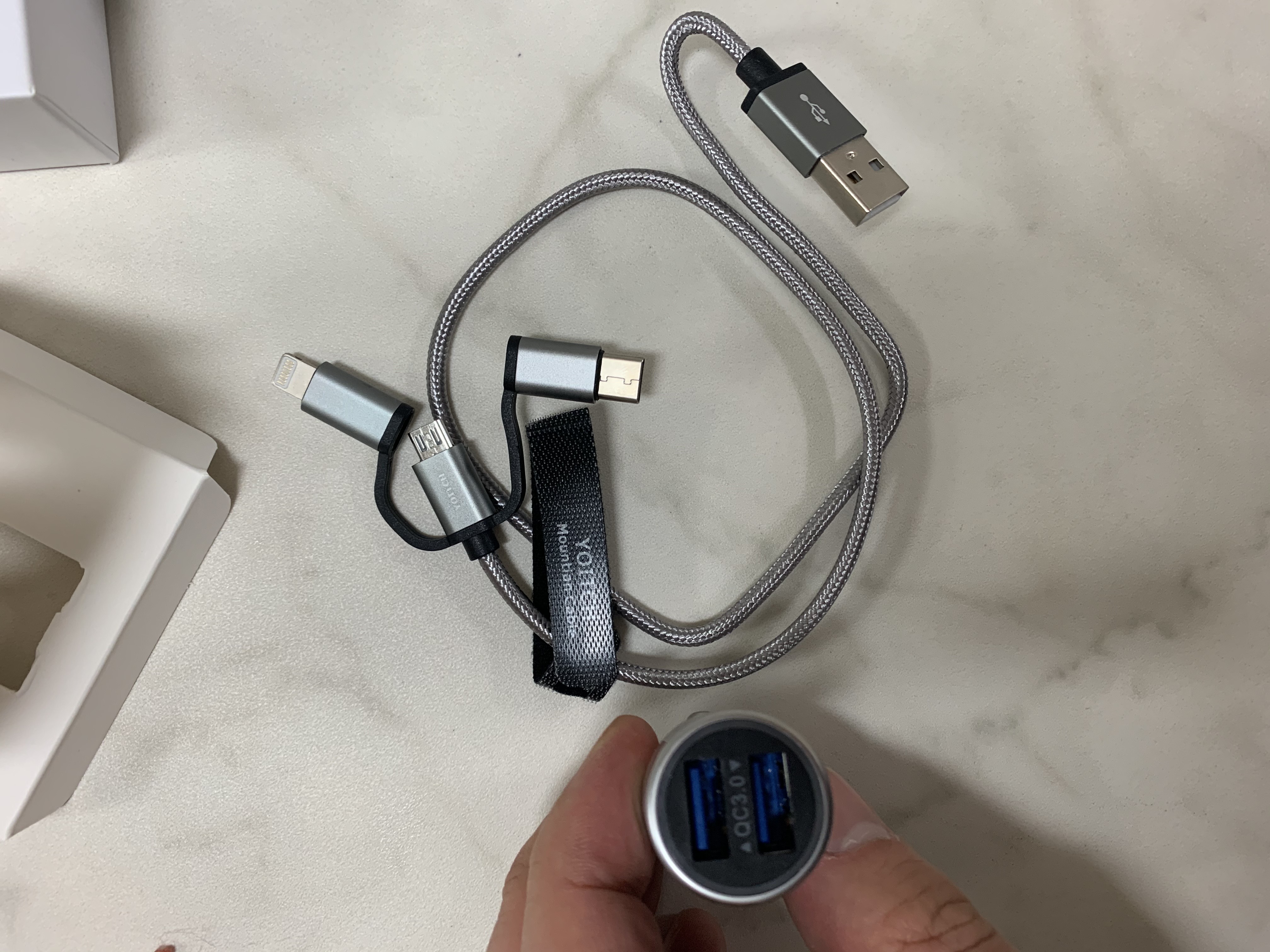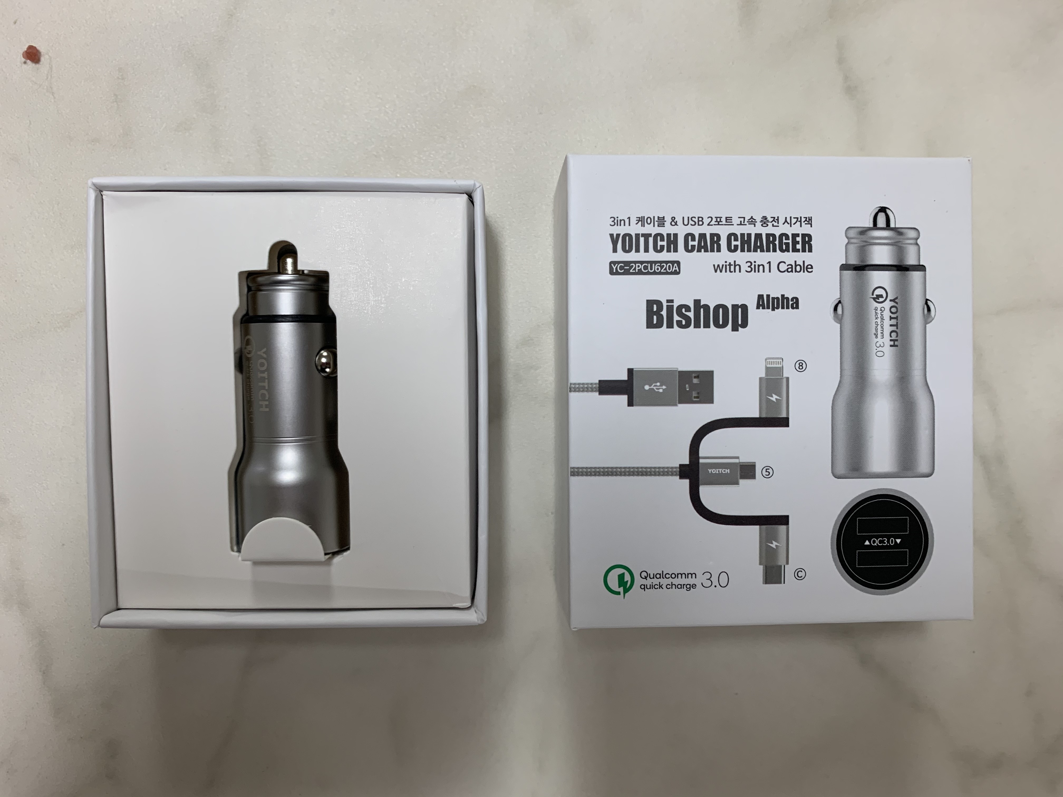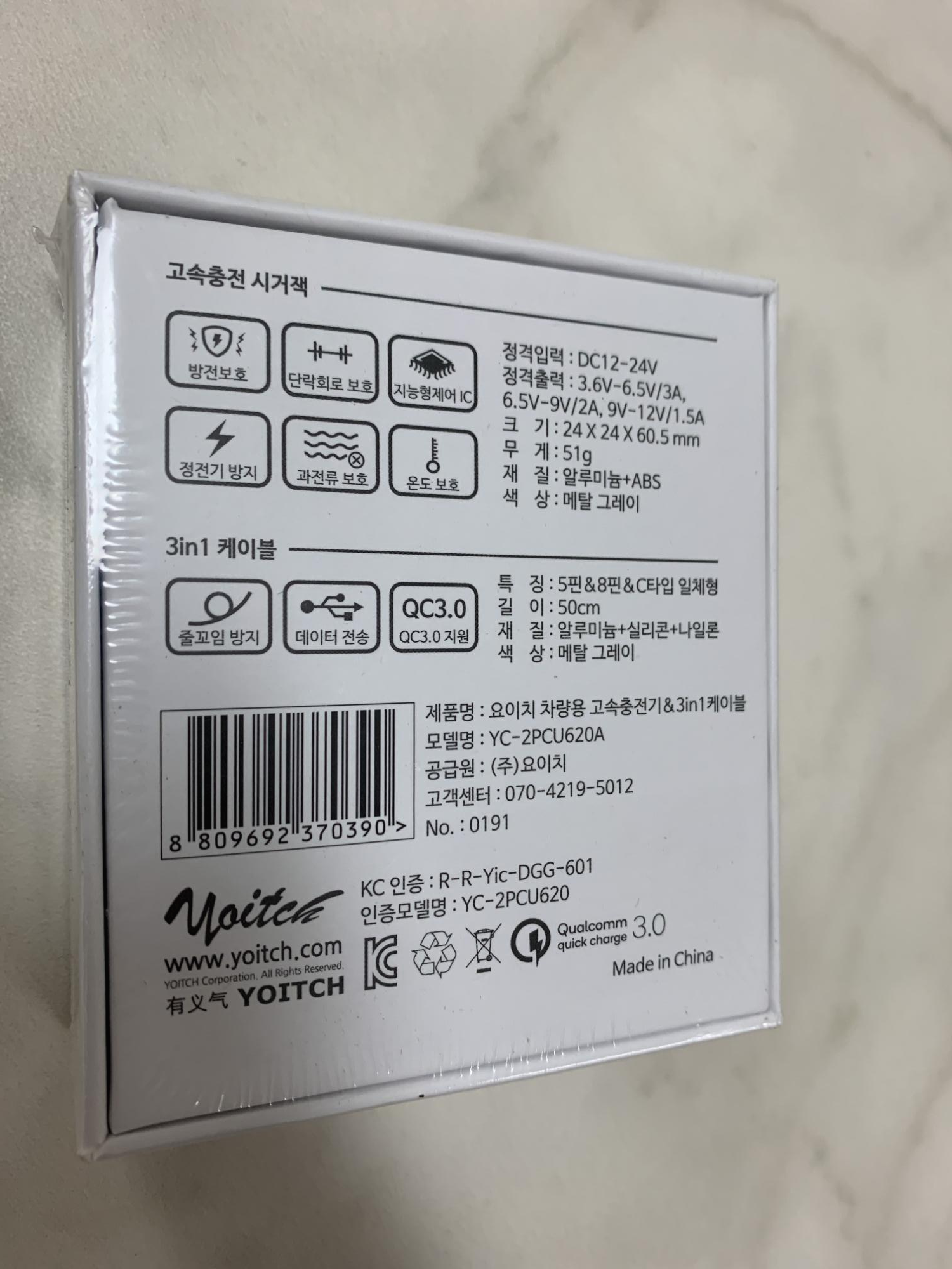요즘 대세에 맞춰 퀵차지 3.0을 지원하는 시거적과 케이블 입니다.