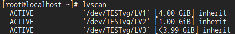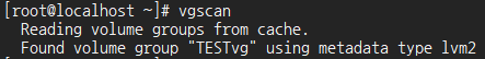 vgscan 명령어로 볼륨그룹을 확인한 후