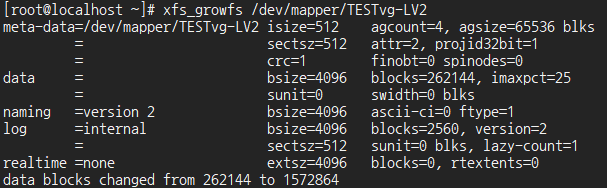 *xfs 일 경우 : xfs_growfs